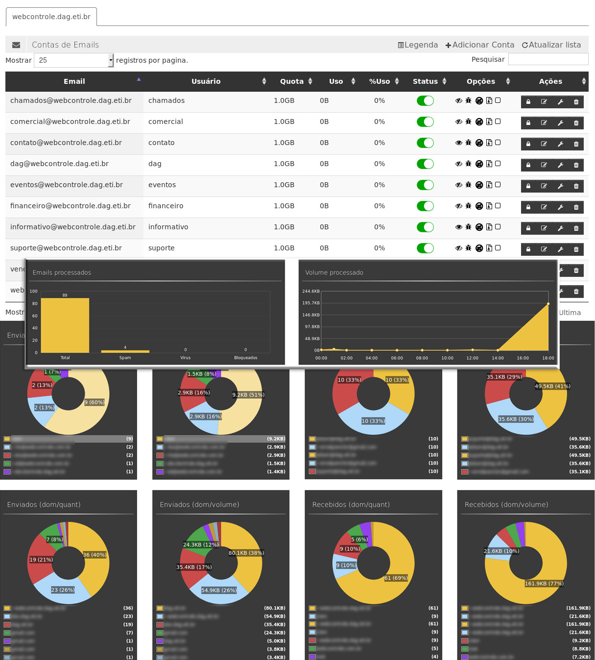 Hospede e controle os emails dentro da sua empresa. Tenha total controle do espaço utilizado, redirecionamentos, listas de distribuição, dentre outras opções. Proteja suas contas de email com antivirus e sistema anti-spam inclusos.